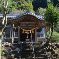 天満神社・深崎=大字川内名字深崎8442-3=創建や由緒は不明。棟札には、正徳6年(1715)2月、本社再建とあり、神主甲斐長門守重遠の名が書かれています。天明元年(1781)9月に本社を再建していることを記した棟札には、延岡城主内藤備後守藤原政脩(まさのぶ)の名があります。明治4年(1871)11月、八戸神社に合祀されましたが、15年8月5日に復社遷座しています。祭神は菅原道真公、大山祇命(おおやまつみのみこと)。例祭日は12月14日。