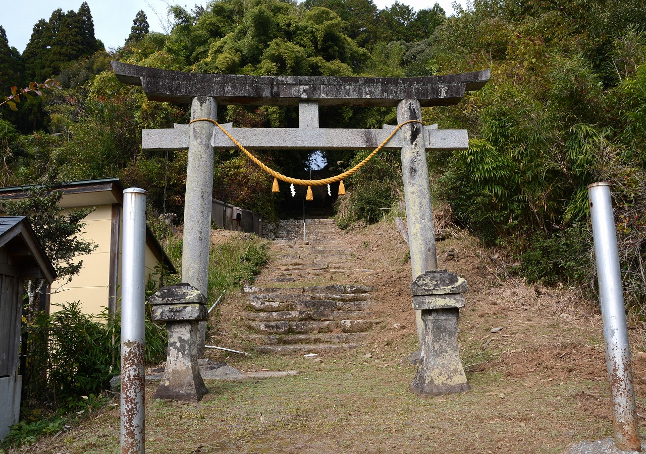 西南戦争で薩軍の解散布告令を受け、明治10年8月16日に神社裏で自刃(じがい)した竜口隊隊長・中津大四郎(享年34)の墓が境内の西側山中にあり、『義乎立志 身波此山爾捨天名乎 末野世爾萬天 乃古須宇禮志佐』(義を立てし 身はこの山に捨てて 名を末の世にまで遺す嬉しさ)の辞世の句が刻まれています。自刃の際に大四郎は、天神社の神主に金銭を渡し、自身の墓を建て辞世の句を刻むよう頼んだ、と伝えられています。