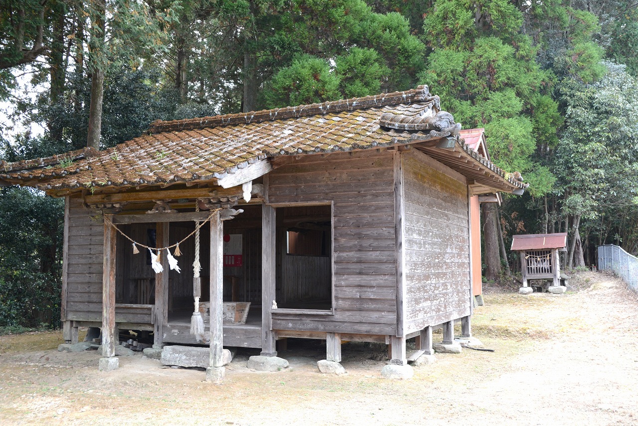 天神社・俵野=大字長井表野675-1=創立年月日、由緒など不詳ですが、棟札によると、万治3年(1660)3月と貞享元年(1684)11月に延岡城主有馬家、天明2年(1782)6月8日に同城主内藤家により社殿の再建が行われており、領主領民の篤厚く尊崇する社であったことがうかがえます。明治4年11月に長井神社へ合祀されましたが、住民の出願により、同13年3月10日に復社を出願、8月に許可され、9月1日に復社しています。御祭神は、天之御中主神(あめのみなかぬしのかみ)、彦火々出見命(ひこほほでみのみこと)、木花咲耶姫命(このはなさくやひめのみこと)。本殿(流造)は2坪 拝殿は(入母屋造)11.3坪。例祭日は、12月22日。
