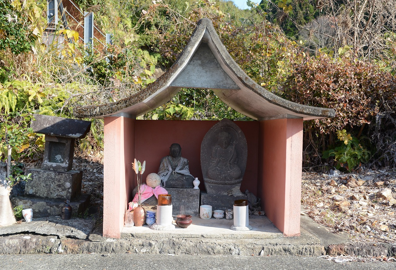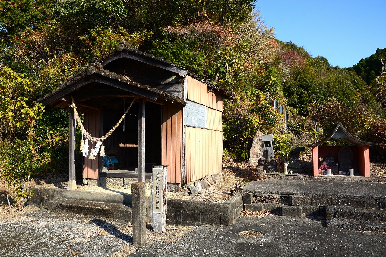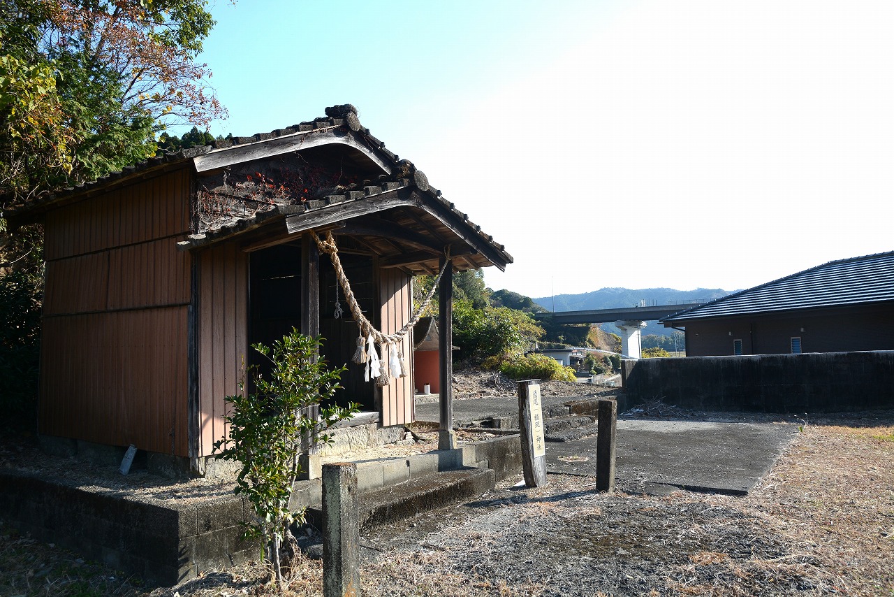 鳶尾(とびお)神社=北川町大字長井本村=御祭神は、佐伯惟治(さえきこれはる)の霊。北川町史に「異色の祭神は、佐伯惟治の霊である。佐伯(大神)惟治は、大友宗麟の父である義鑑(よしあき)の武将であり、豊後国海部郡栂牟礼(とがむれ)城主であったが、大永7年(1527)肥後の菊池氏と内通したとの讒言(ざんげん)により、主家より滅ぼされている。その非業の最後を遂げる前、本町可愛岳に身を潜めていたとか、土持家の家臣新名党により打ち落された首級が瀬口の中村に埋葬されているなどの伝承がある。大分県の南部に点々と惟治の霊を祭った鳶尾神社や冨尾神社が所在しているが、本町にも大字長井本村に鳶尾神社(明治4年11月、長井神社に合祀)や、かつて鳶尾権現と言われた旧村社瀬口神社などがあり、合わせて四社の祭神となっており、伝承と共に豊後との関係の深さを物語っている」と記されています。