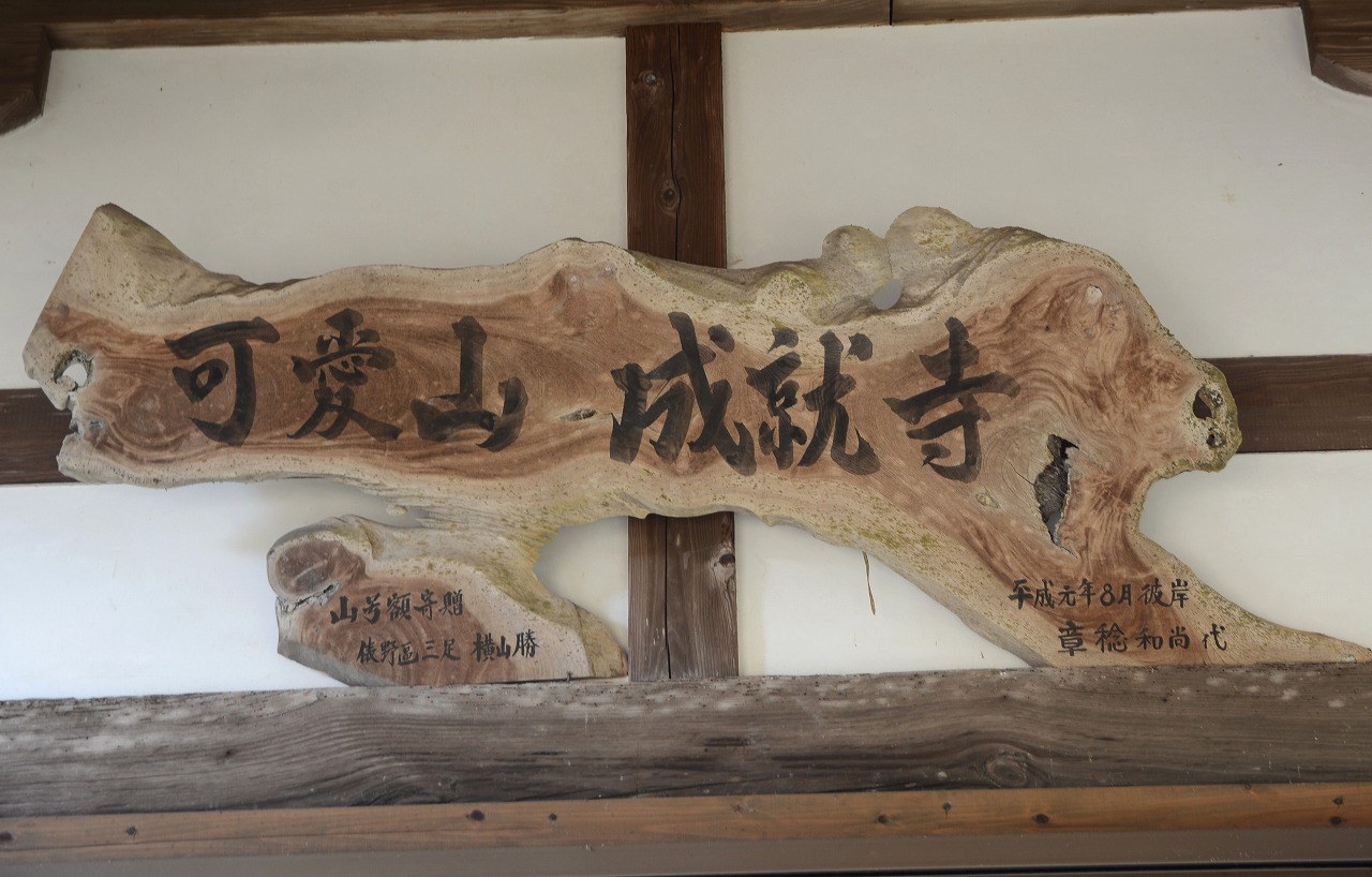 成就寺(じょうじゅうじ)=北川町大字長井可愛6422-1=同町家田の観音山に寛文2年(1662)僧了悟が創建した寺院。天台宗派に属し、本尊は「聖観世音菩薩で「安楽山 成就寺」と称していました。延享3年(1746)、長井の現在地に移建。もともと同地には「可愛 神宮寺」と称する伽藍(がらん)=僧侶が集まり修行する清浄な場所=がありましたが、年を経るごとに荒廃していたようで、移建後、「可愛山 成就寺」に改称したと伝えられています。その後、明治4年(1871)に川内名(かわちみょう)の吉祥寺に併合され、荒廃寸前となりましたが、明治14年(1881)4月8日、檀徒の尽力で復興が成り、現在に至っています。