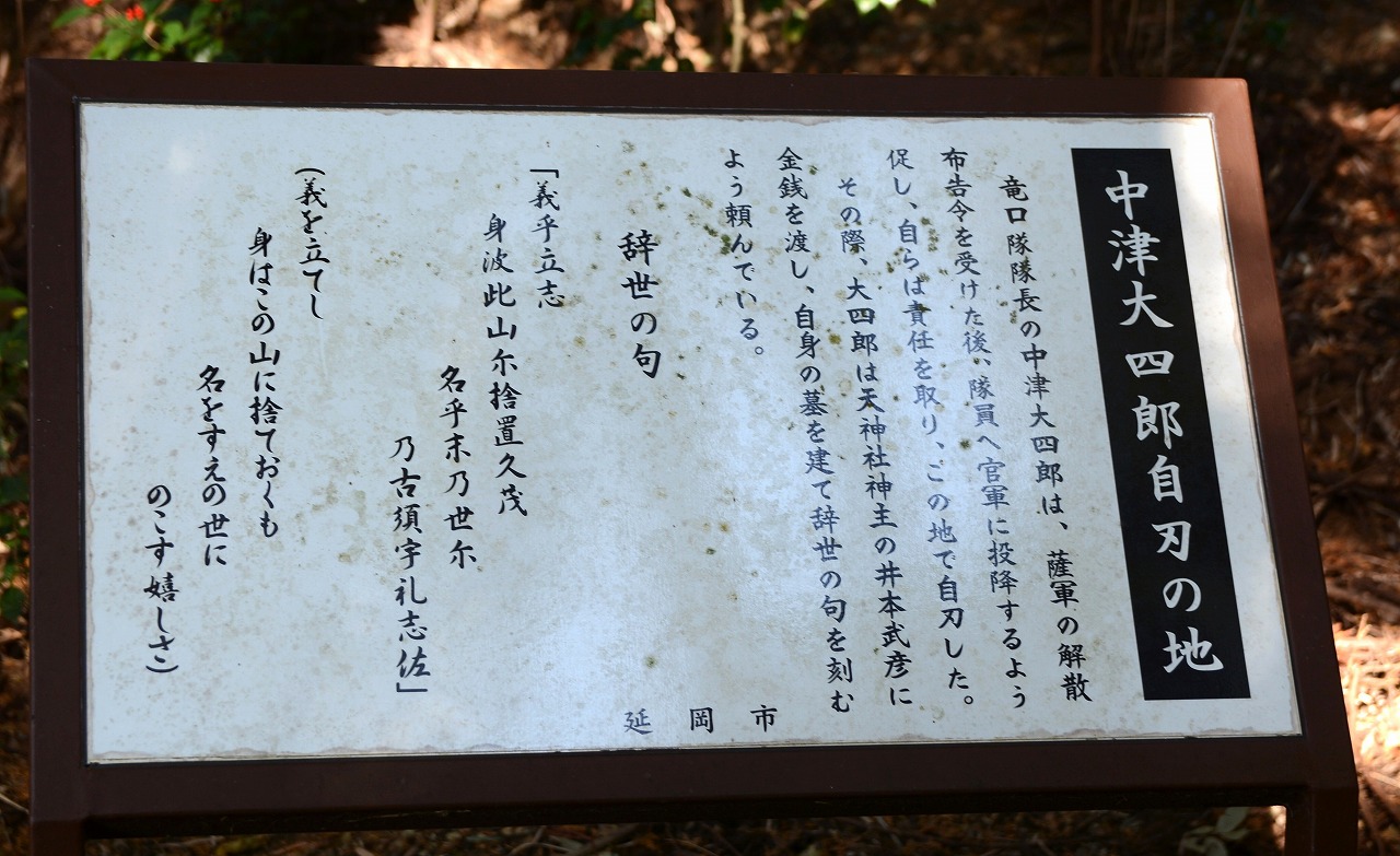 中津大四郎(だいしろう)自刃の地~辞世の句を詠み割腹