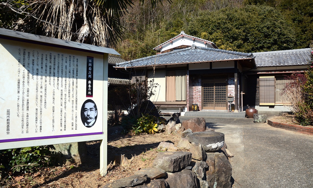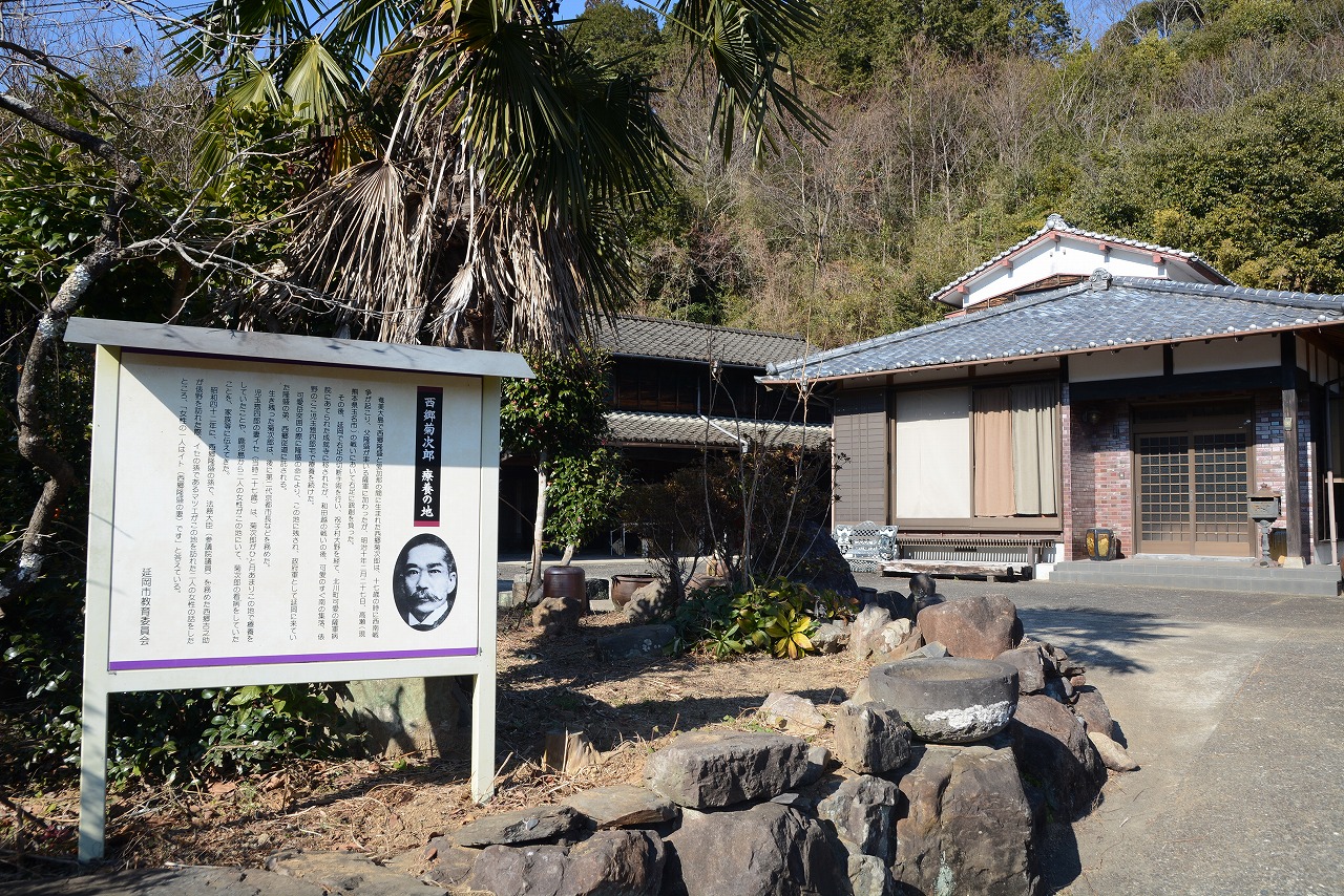 西郷菊次郎療養の地(児玉惣四郎宅)=北川町俵野~俵野脱出を前に西郷は児玉宅で加療中の息子菊次郎に永遠の別れを告げ、政府軍に投降するよう諭しました。