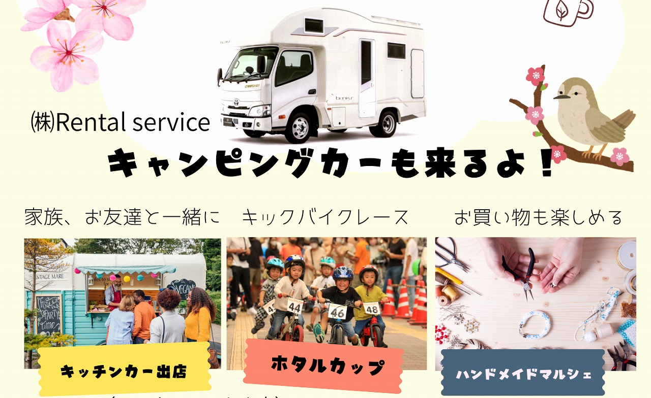 キックバイクレースやアウトドア用品、キャンピングカーの展示、ワークショップなど。キッチンカーも出店します。子供から大人まで楽しめるイベントです。ぜひ、お越しください。