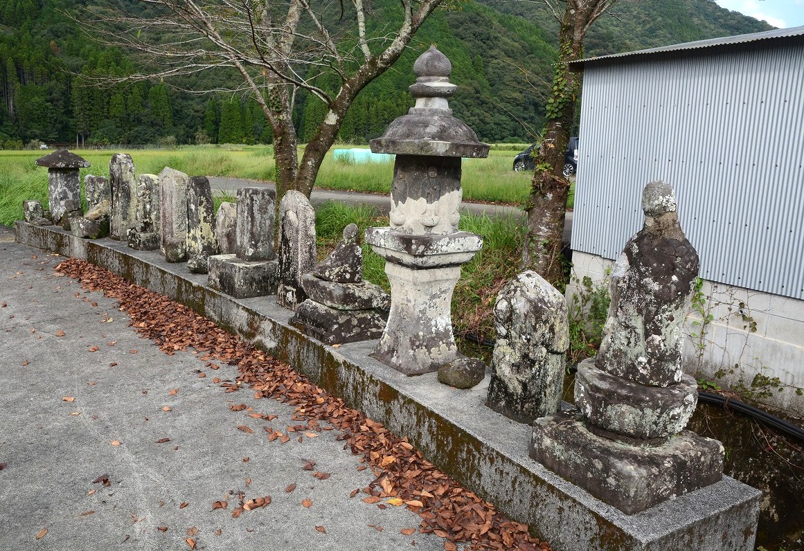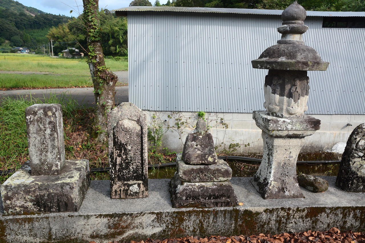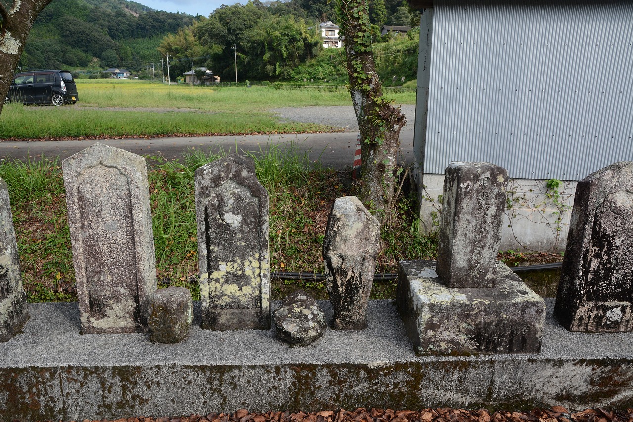 曹洞宗薬王山東光寺(とうこうじ)跡=北川町川内名多良田。跡地に多良田公民館が建ち、敷地内の一角に六地蔵憧や庚申塔などが鎮座しています。判読できる石塔群は、▽「六地蔵塔」=享保十一年丙午之天(1726年)▽「三彭安全塔」=元禄十三年(1700年)▽庚申塔=享保二年(1717年)▽甲斐三儀供養塔▽青面金剛など。