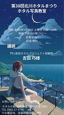 ホタルの館では、ホタルかご作り(午後2時~3時)と「ホタル写真撮影教室」「(午後3時~4時)も。写真教室は、門川高校ホタルプロジェクト顧問の吉田巧先生が講師となり、ホタル撮影の仕方を教えます。受講料無料、定員10人で、希望される方はホタルの館TEL0982(27)4740まで申し込んで下さい。
