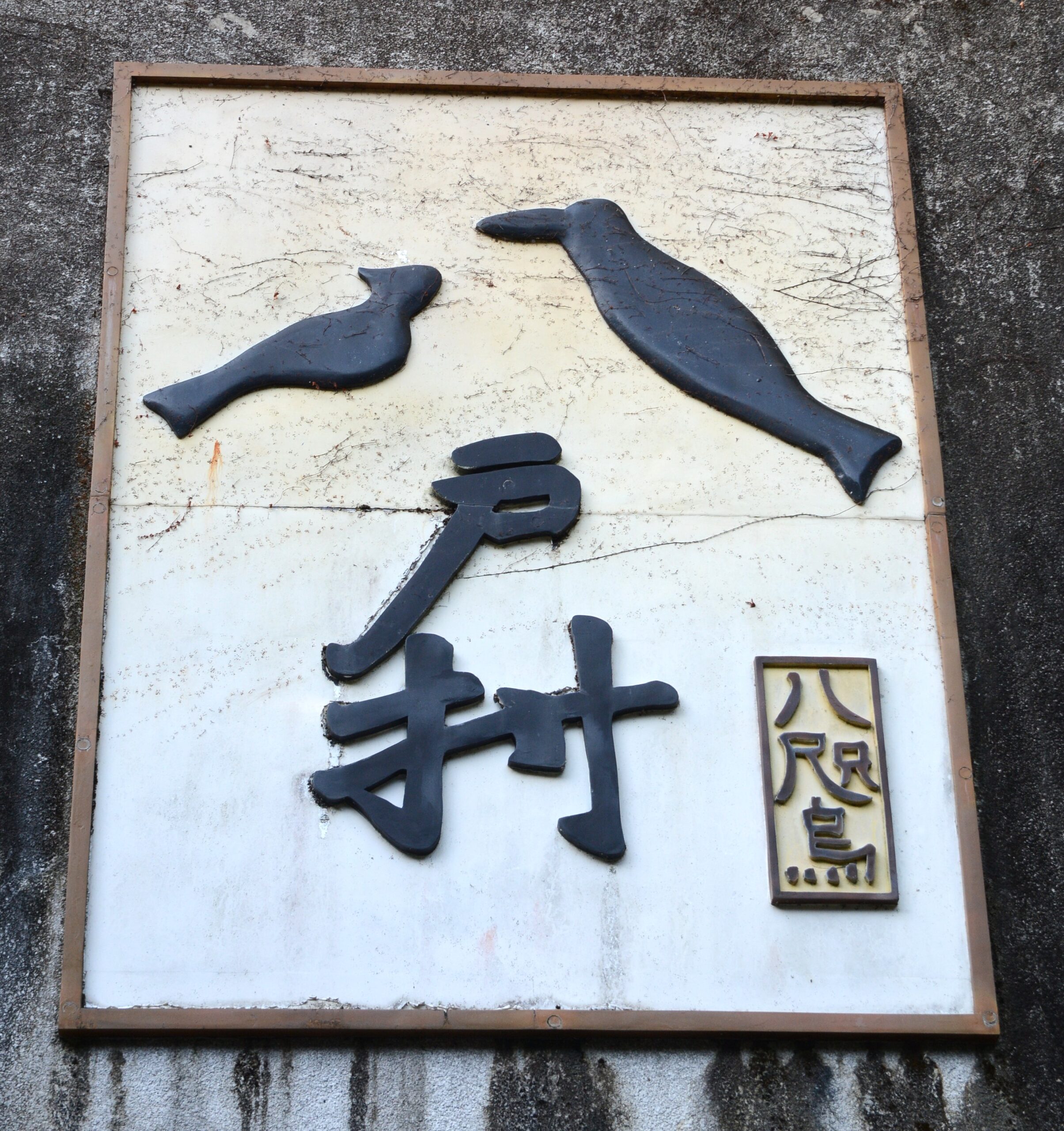北川散策⑤八戸は、日向と豊後の国境の村で、日向最後の口屋番所があった所。国道326号八戸トンネル出入り口には、「八戸村」のレリーフが刻まれ、「八」の文字は、は2羽のカラスが向かい合った形で表現され、その右下に「八咫烏」(やたがらす)の文字が刻まれています。八咫烏は日本神話に出ている三本足のカラス。熊野権現の神使と言われ、一飛びで七谷七峰を越える霊力を持つとされ、トンネルの西側入り口のすぐ下の旧国道脇には、「八戸烏」(やとがらす)を刻んだ石塔と、石塔の説明を書いた木柱が立っており、木柱には「烏をモチーフにしたこの碑は、元禄8年(1695)に建立されています。ここ八戸は、日向・豊後を結ぶ国境の宿場。梓山国境越えは行旅の難所、熊野権現の使いで、道案内の神とされる八咫の烏の信仰があったことがうかがえる」と記されています。「八咫」が「八戸」に転化したのでしょうか。八咫烏は、熊野で神武天皇の道案内を行い大和の国の平定を手助けしたことから、「勝利の導き手、勝利のシンボル」とされています。八咫とは、親指と中指を広げた長さを指し、八咫烏は、「大きいカラス」という意味。三本足は、「天」「地」「人」を表すとも言われます。その『八咫烏』を昭和6年(1931)、日本サッカー協会がシンボルとしました。旗の黄色は公正を、青色は青春を表わし、はつらつとした青春の意気に包まれた日本サッカー協会の公正の心構えを表現しているということです。ユ二ォームのエンブレムとして採用したのは、1987年からです。